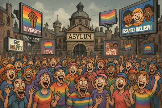 > Le résultat de ce marxisme devenu fou, de ce canard sans tête qui continue sa course, c’est une société sens dessus dessous où à force de renoncer aux normes religieuses, nationales, morales, sexuelles qui structurent notre civilisation, à force de tolérance avec les intolérants, on voit s’imposer ici et là, du quartier sensible aux grands médias, une absence de normalité qui précède une autre normalité beaucoup moins souple que celle que nous devons abandonner dans la repentance. Sans doute, l’asile d’aliénés n’était-il pas la solution, mais l’autre branche de l’alternative ne consiste pas à transformer la société entière en asile. Et c’est pourtant ce qui arrive.