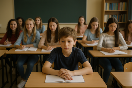 Mais les garçons ne sont pas seulement des être pleins d’énergie à dépenser, ils sont aussi de grands timides : par exemple, à l’école ils sont toujours inquiets du regard des filles. Ils n’oseront que rarement aller dans les groupes de théâtre ou d’art s’ils ne sont pas entre eux.
