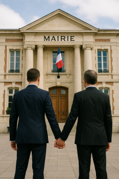 Bruno, président de l’association contre le sida AIDES et Michel qui en est le directeur, Pacsés en 1999, convoleront après vingt-cinq ans de vie commune, lors du congrès de leur association.